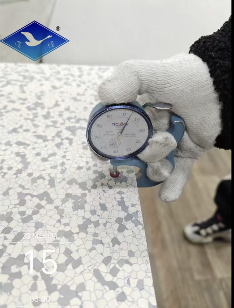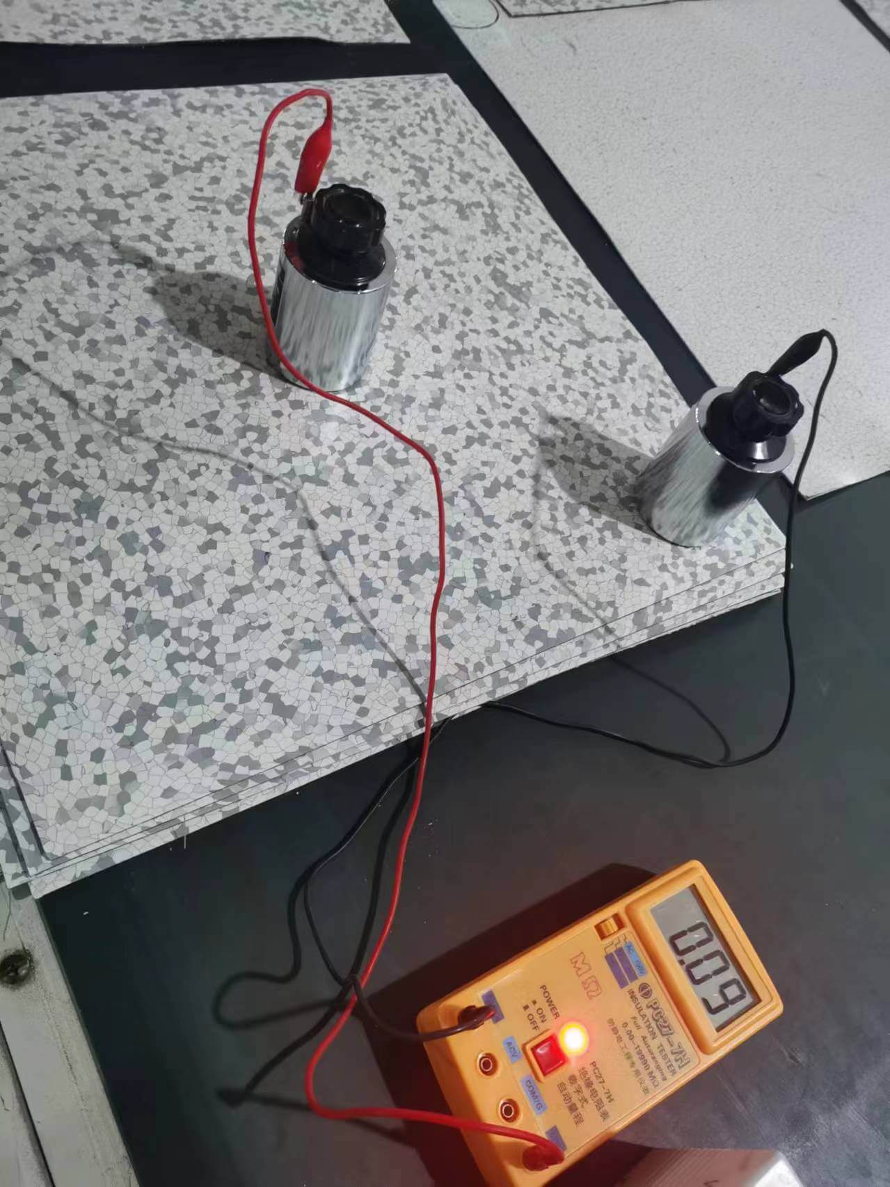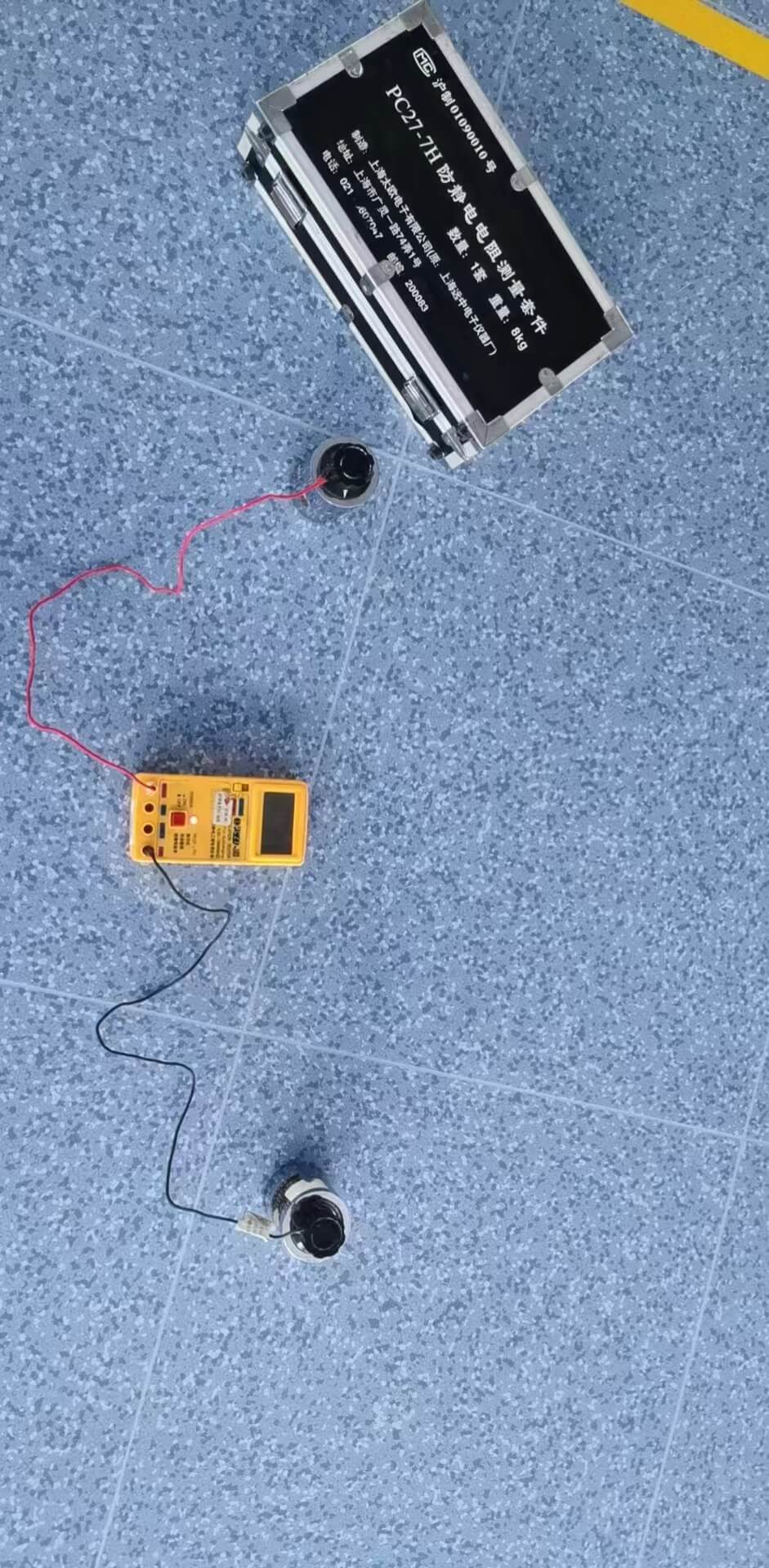 4.7 Gauge the resistance between the surface of tiles and the subfloor regularly during the laying.The resistance range shall be 105 Ω–108 Ω,and-replace the tiles if value exceeds this range.