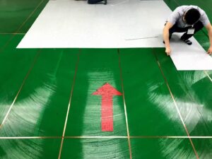 4.2.1 Paste the copper foils onto the subfloor to form the network with neoprene adhesive. Spread the adhesive to thebreadth of 35mm. Paste the foils after the adhesive doesn’t stick the hands. The conductive glue shall be applied at the nodes of the foils to ensure the conductivity.